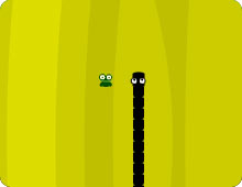 Polowanie na żaby. Im więcej żab zje wąż tym staje się dłuższy. Czerwone żaby - to bonusy, za które otrzymujesz 5 punktów.